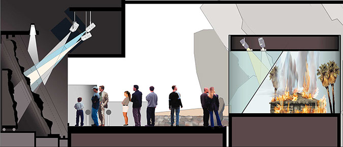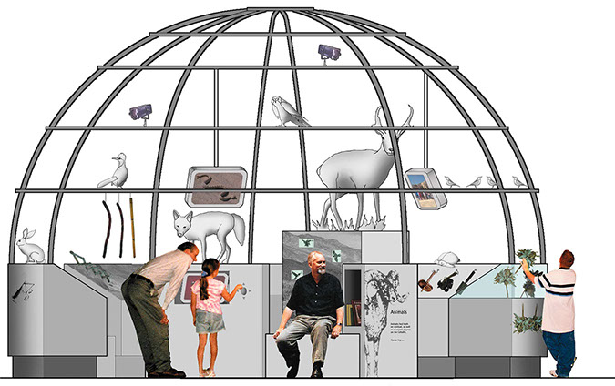 IQM worked with the Agua Caliente and scholars to develop the narrative and interpretive planning. Introductory exhibits featured the moment elders decided not to rebuild big house after the burning ceremony and to stop using the Cahuilla language. The raised platform introduces exhibit ideas to allow understanding of the journey through time. Multiple entries and pathways address common themes throughout the exhibits.
