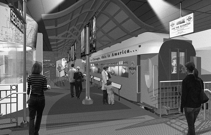The two-year project included redesigning 25,000 square feet of permanent galleries on Chicago history and providing an additional 20,000 square feet of temporary exhibition space by relocating collections and staff areas. The final installation includes the renovated first “EL” car in Chicago, made for the 1890s World’s Fair.
