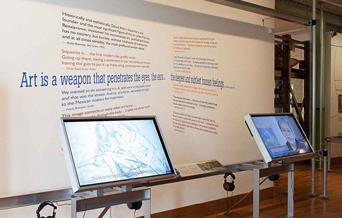 Multifaceted and laced with controversy, the story is told through multiple voices – scholars, artists, eyewitnesses, critics, and news reports. Together these create an exhibition of record, while prompting critical thinking among visitors about the mural, the work and influence of artist David Alfaro Siqueiros, and the power and future of public art and social expression.